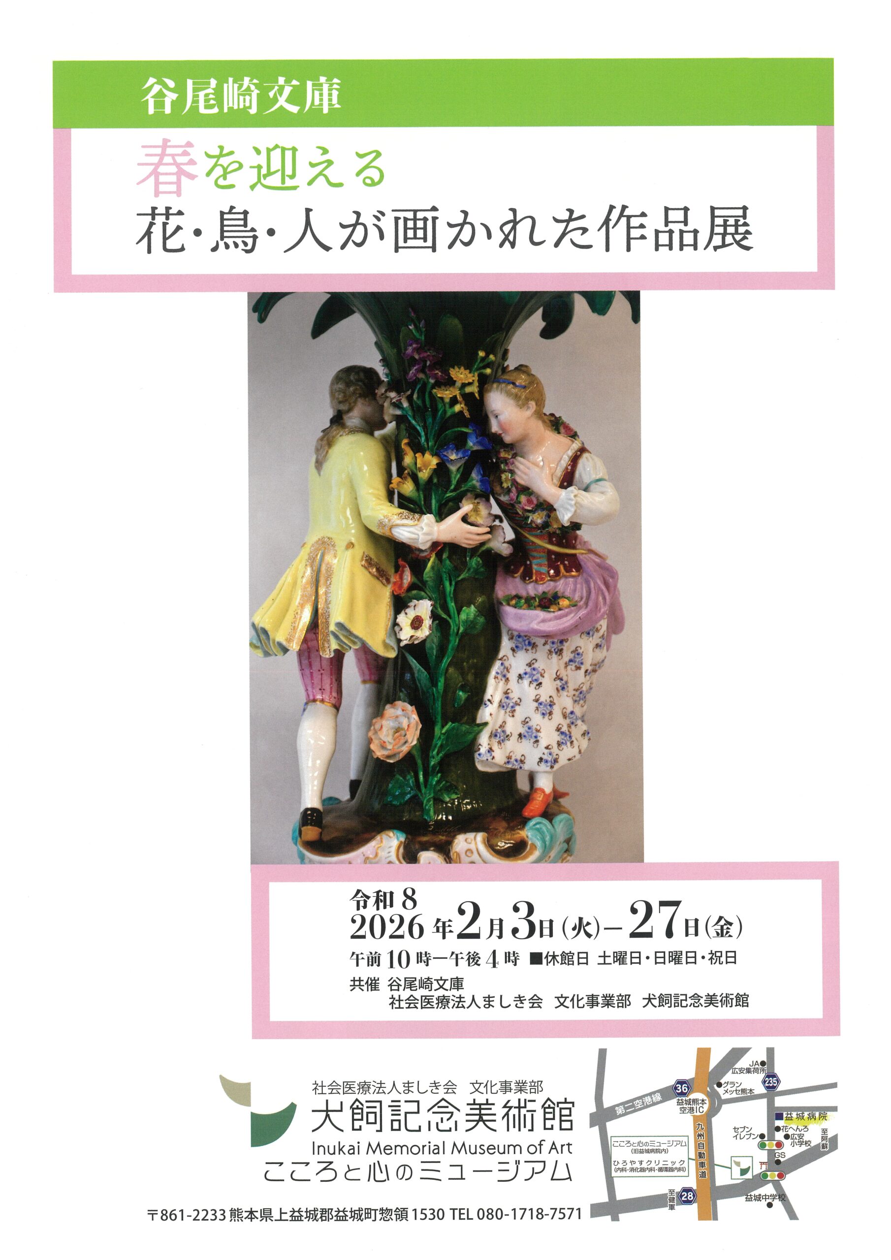 犬飼記念美術館では2月3日(火)から2月27日(金)まで谷尾崎文庫「春を迎える花・鳥・人が画かれた作品展」を開催いたします。
